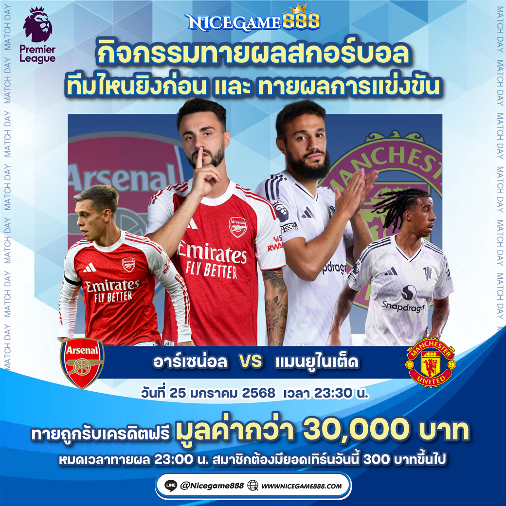 ทายผลทีมใดยิงประตูแรกและทายผลการแข่งขันถูก ลุ้นรับเงินสด 30,000 บาท(หารตามจำนวนคนถูก)